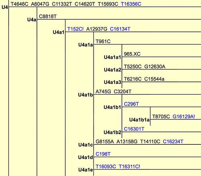 I Phylotree finns inte mycket information, i princip bara vilka mutationer som finns på varje gren. Inte särskilt informativt och inte särskilt lättläst.