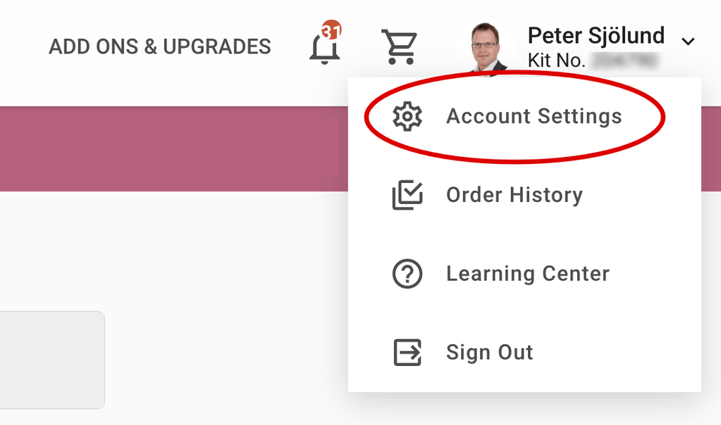 Under ditt namn och kitnummer, klicka på ”Account Settings”. Då öppnas en ny sida med några olika ”flikar”: