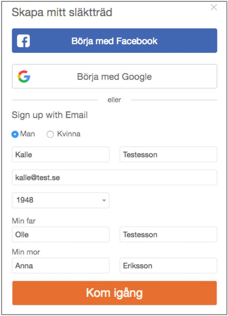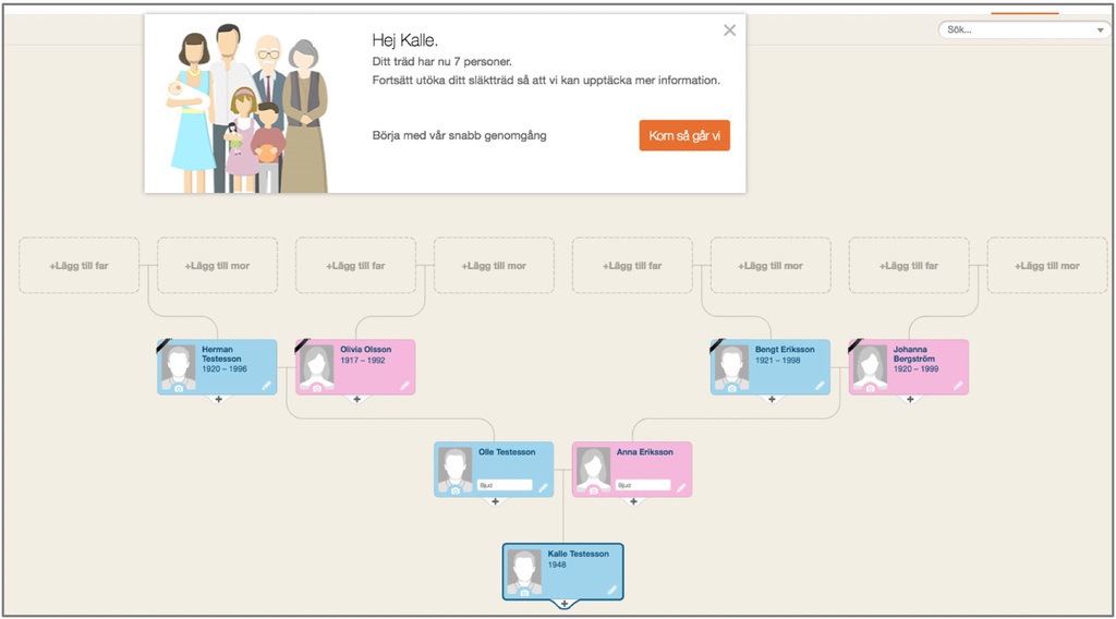 När du kommer till denna sida klickar du på Påbörja ditt släktträd.