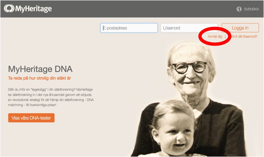 - Skapa ett gratiskonto på MyHeritage (eller använda ett konto som du redan har)