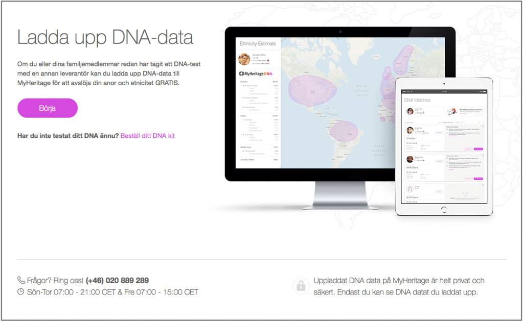 Numera bör du som har rötter i Europa därför vara med i DNA-databasen hos både FTDNA och MyHeritage. Och det fina är att du inte behöver testa om dig, det går att överföra ditt resultat från FTDNA till MyHeritage! MyHeritage har dessutom lika strikta regler kring DNA-data som FTDNA. De delar inte med sig av ditt data varken till läkemedelsindustrin eller polisen.